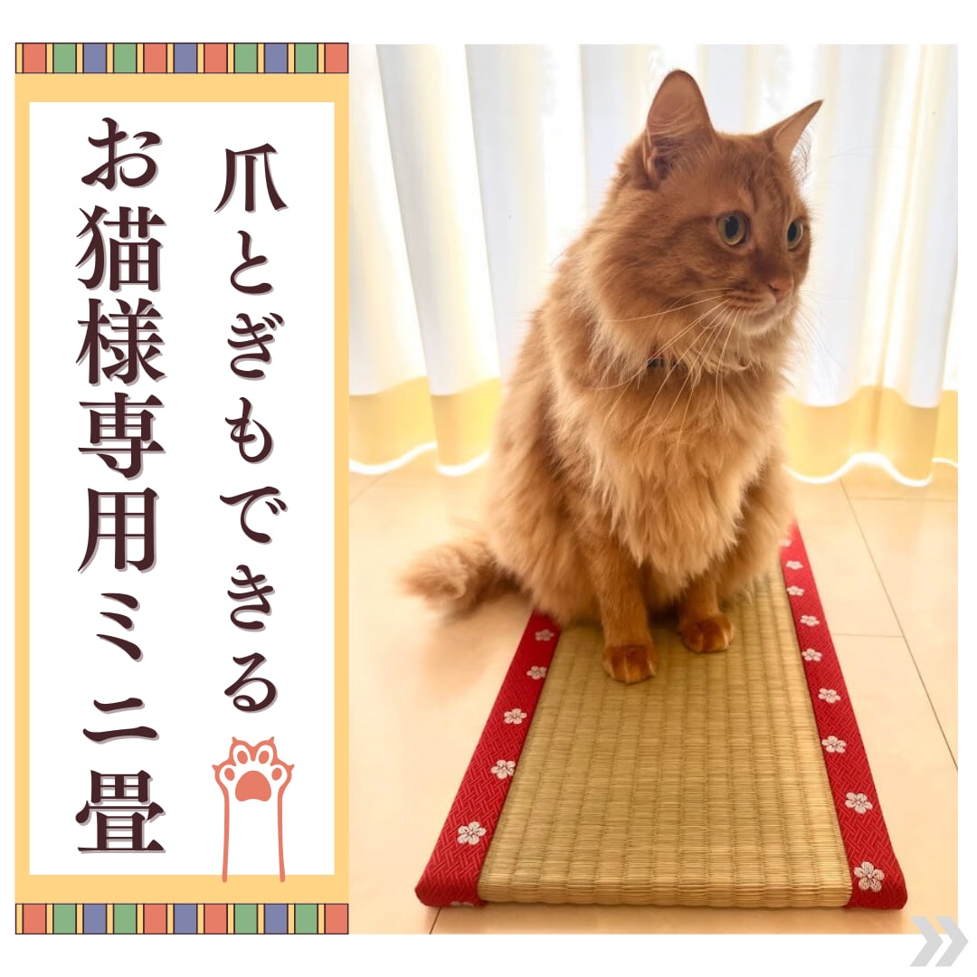 朝日新聞、まいどなニュース掲載、 TBS番組「ひるおびで」でも紹介されました! ----------------------------------------------- 【大切な家族が使うものだから】 安心安全の国産(熊本)い草を100%使用し、熊本の畳職人が手作業で製作しています。 熊本で丁寧に育てられたい草は、猫の体にも優しい素材です。 熊本のい草はとても丈夫で、お猫様が爪を研いでもすぐボロボロになるようなことはありません。 ※注文状況により予約商品となる場合がございます。 【猫が喜ぶポイント】 ・キャットタワーの下に置いて猫の膝の負担を軽減することができます。 ・畳の目は猫が爪をしっかりひっかけて爪をとげるため、ストレスを発散できます。 ・体重をかけても滑りにくい滑り止め付き。 ・避難など非常時にも持ち運べるサイズです。 ・大型猫用のキャットケース、猫用ベッドに置いての使用もオススメ! 【マンションやアパートで猫を飼っている方に!】 ・大きめのお猫様は2枚での使用をおすすめします。 ・畳は薄いため収納もしやすく便利です。 ・素材が散らばりにくく、爪とぎ後もお掃除楽々。 【銀行振込・コンビニ払いをご選択のお客様】 入金完了後(前払い)の注文確定・商品の手配となります。 --------------------------------------------------- 【商品詳細】 ■サイズ:約50×25×2 (cm) ■重量:約635g ■カラー(畳縁):梅柄(赤) ■材質:い草、畳縁:ポリエチレン・ポリプロピレン・ポリエステル ■生産地:熊本県 --------------------------------------------------- ▼For international shipping, please purchase from ebaystore. https://qr.paps.jp/e9hUb