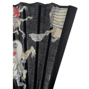 「ニッポンの不思議でおもしろい世界:妖怪シリーズ」江戸時代、風俗・奇談・静物・風景など描いた絵画「浮世絵」。楽器の妖怪たちが夜行する絵巻や、器物に取り付く付喪神の妖怪絵巻など、妖怪のおもしろおかしい世界を、一枚のハンカチから扇子に仕上げました。(日本の妖怪絵画コレクター:湯本豪一 監修)